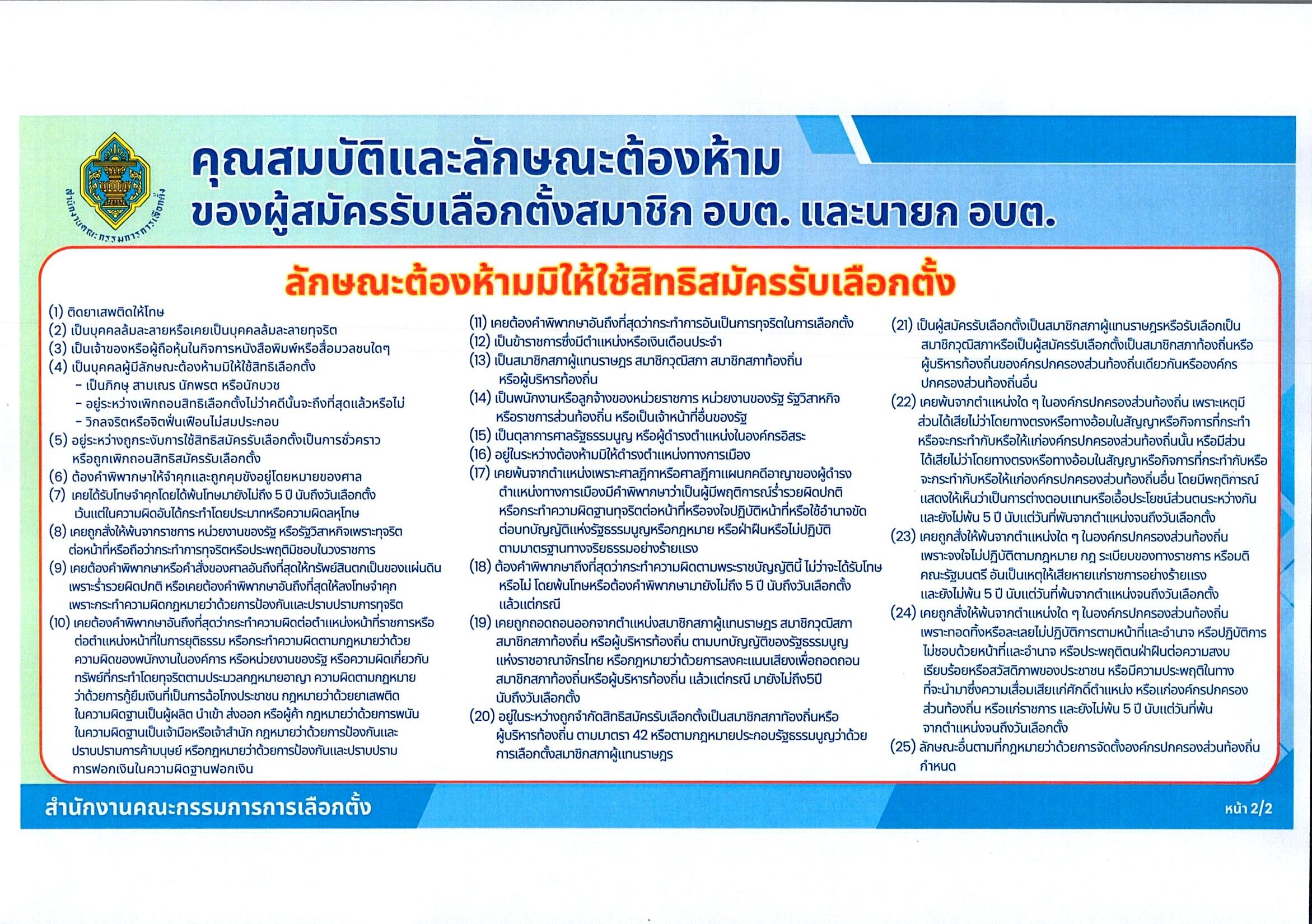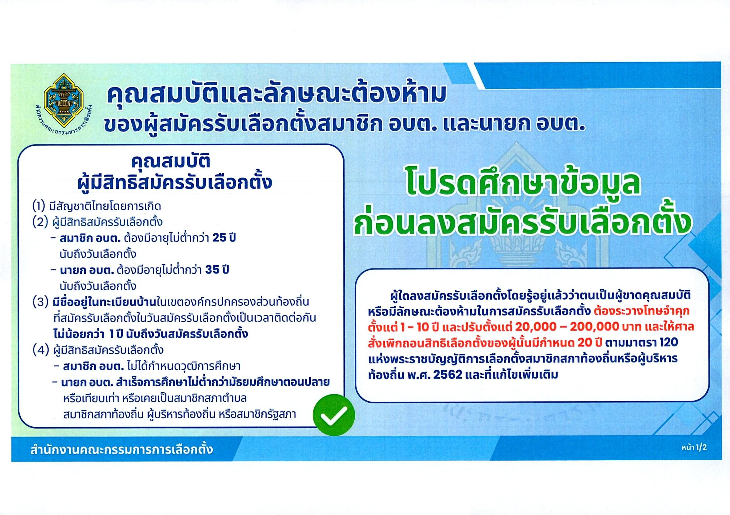 คุณสมบัติและลักษณะต้องห้ามของผู้รับสมัครเลือกตั้งสมาชิก อบต. และนายก อบต. วันที่ 14 ตุลาคม พ.ศ. 2568 เวลา 11:24:51 น. ข่าวสารประชาสัมพันธ์