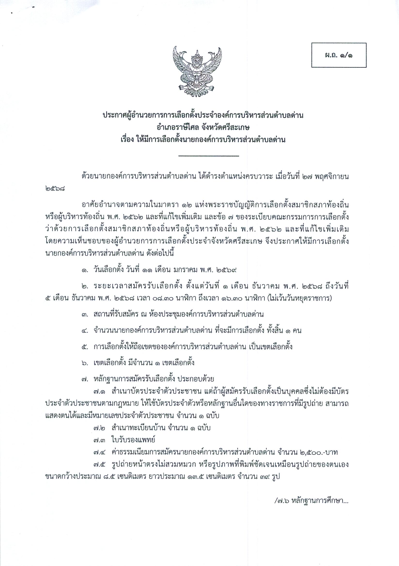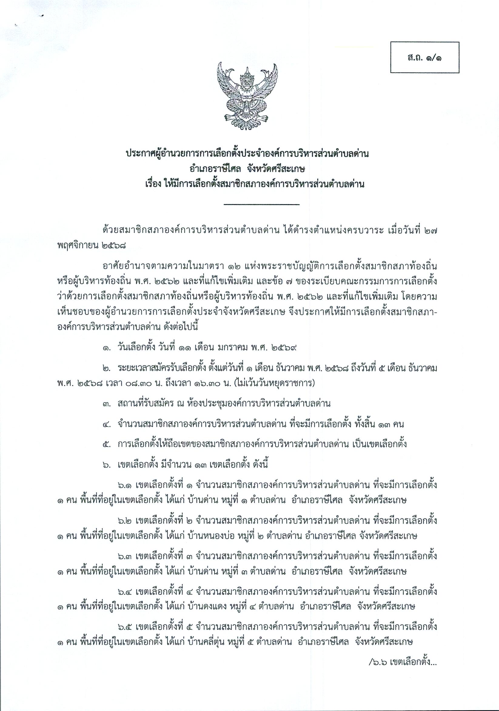 ประกาศผู้อำนวยการเลือกตั้งประจำองค์การบริหารส่วนตำบลด่าน วันที่ 1 ธันวาคม พ.ศ. 2568 เวลา 11:54:41 น. ข่าวสารประชาสัมพันธ์
